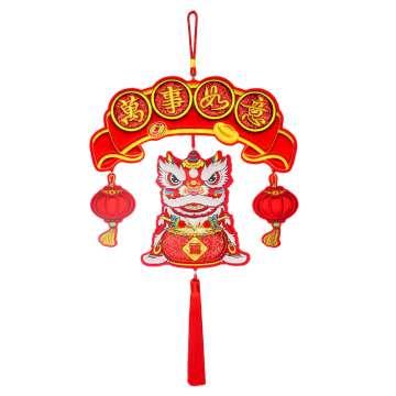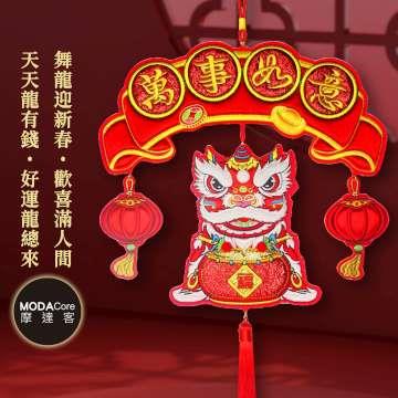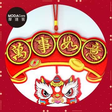摩達客◉春節開運招財◉精緻刺繡萬事如意醒獅喜氣盈門流蘇吊飾掛飾