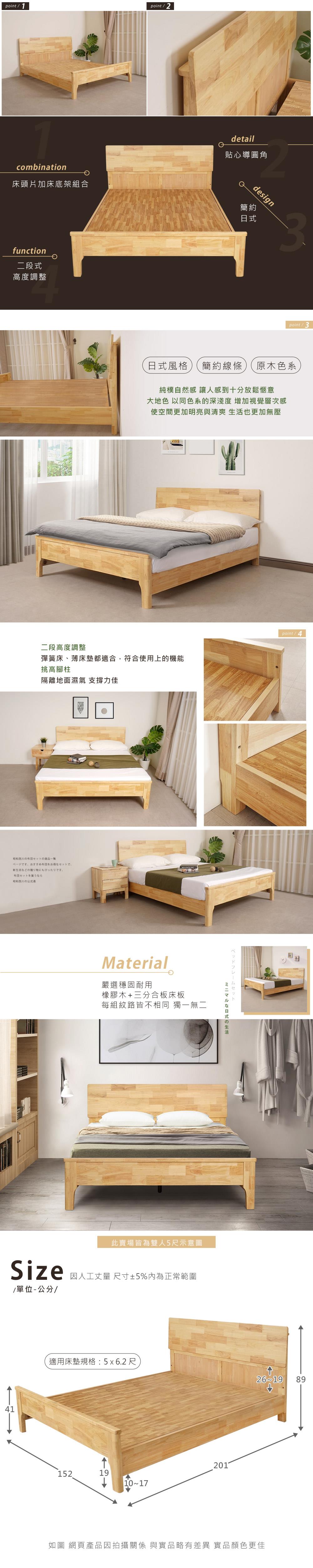 喜家居雙人5尺實木床架組(附床板)(2335)