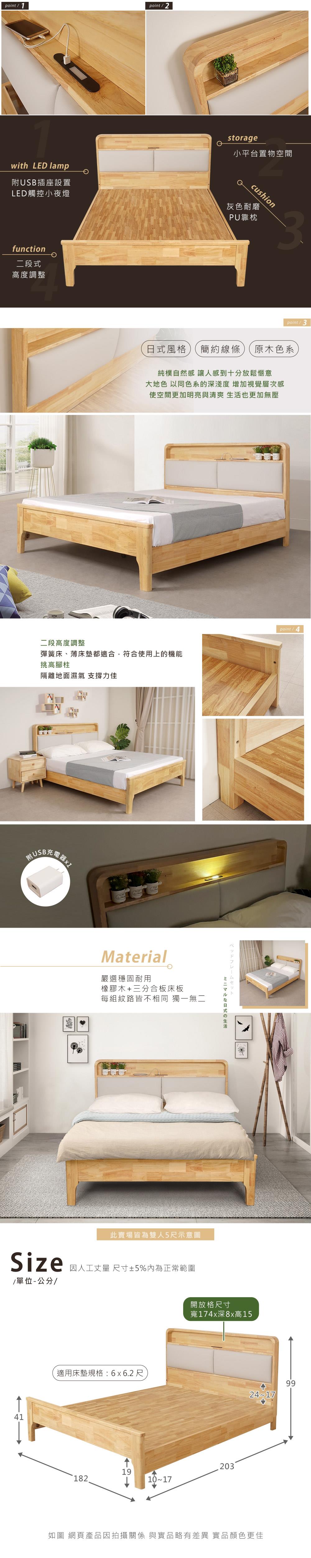 材質:橡膠木+三分合板床板+PU