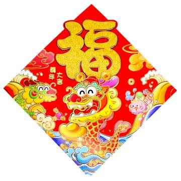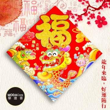 摩達客◉春節開運招財◉立體大金福字開心龍抱元寶斗方-單片春聯