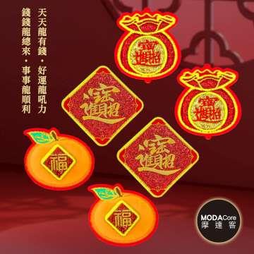 摩達客◉春節開運◉精緻刺繡多用途磁貼杯墊牆飾-招財進寶桔福袋-3款2入一組