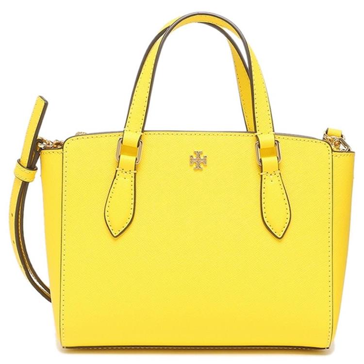 Tory Burch 雙T-LOGO素面皮革兩用包-黃