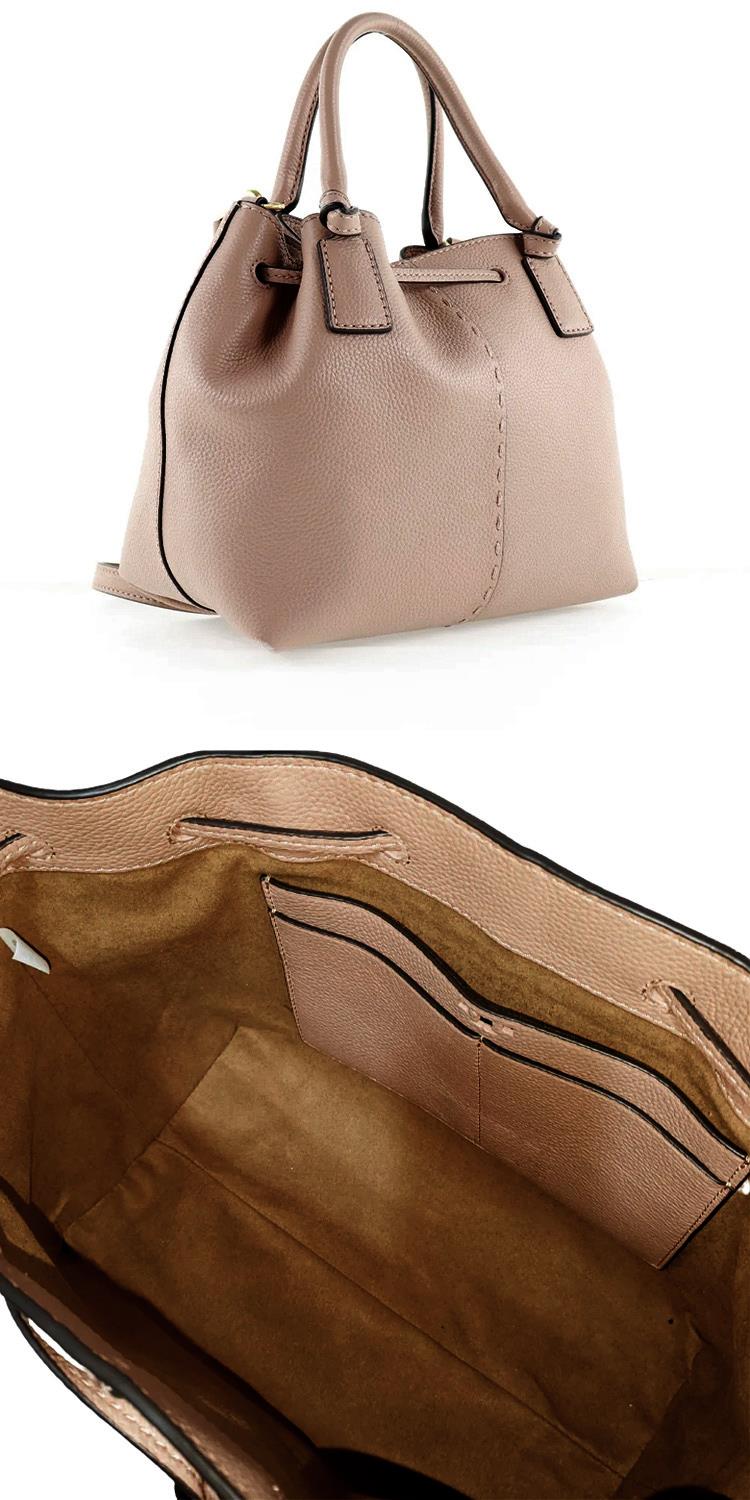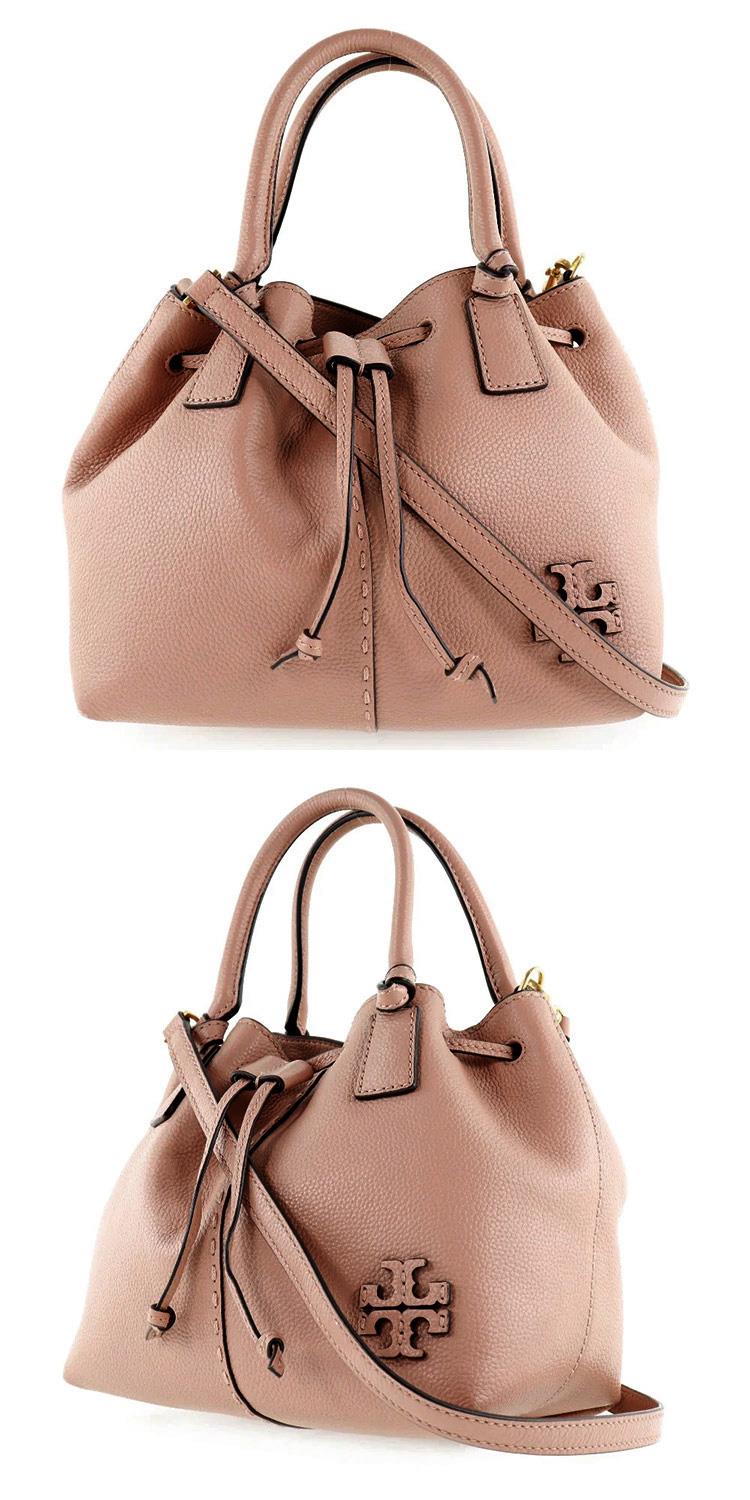 Tory burch 拼接皮革手提包-乾燥玫瑰