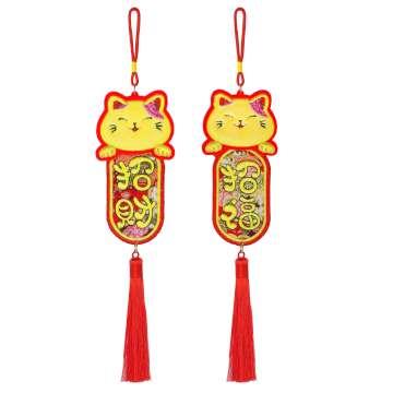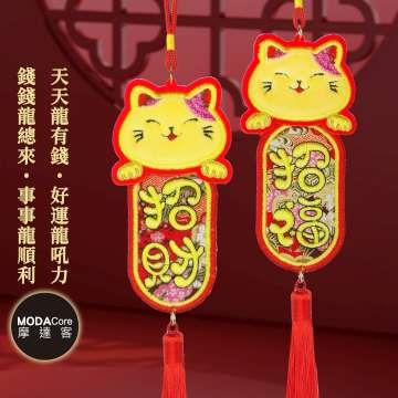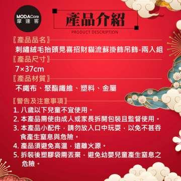 摩達客◉春節開運招財◉刺繡絨毛抬頭見喜招財招福招財貓流蘇掛飾吊飾(2入一組)
