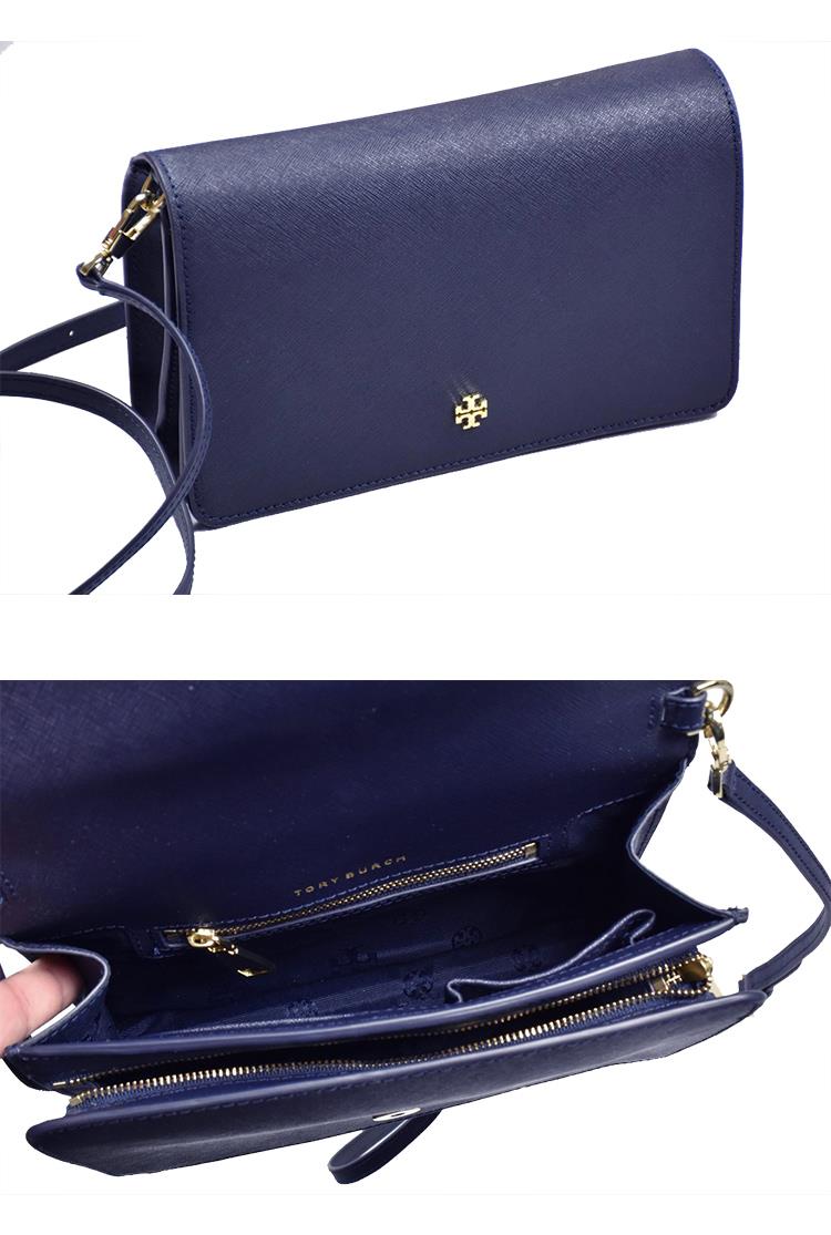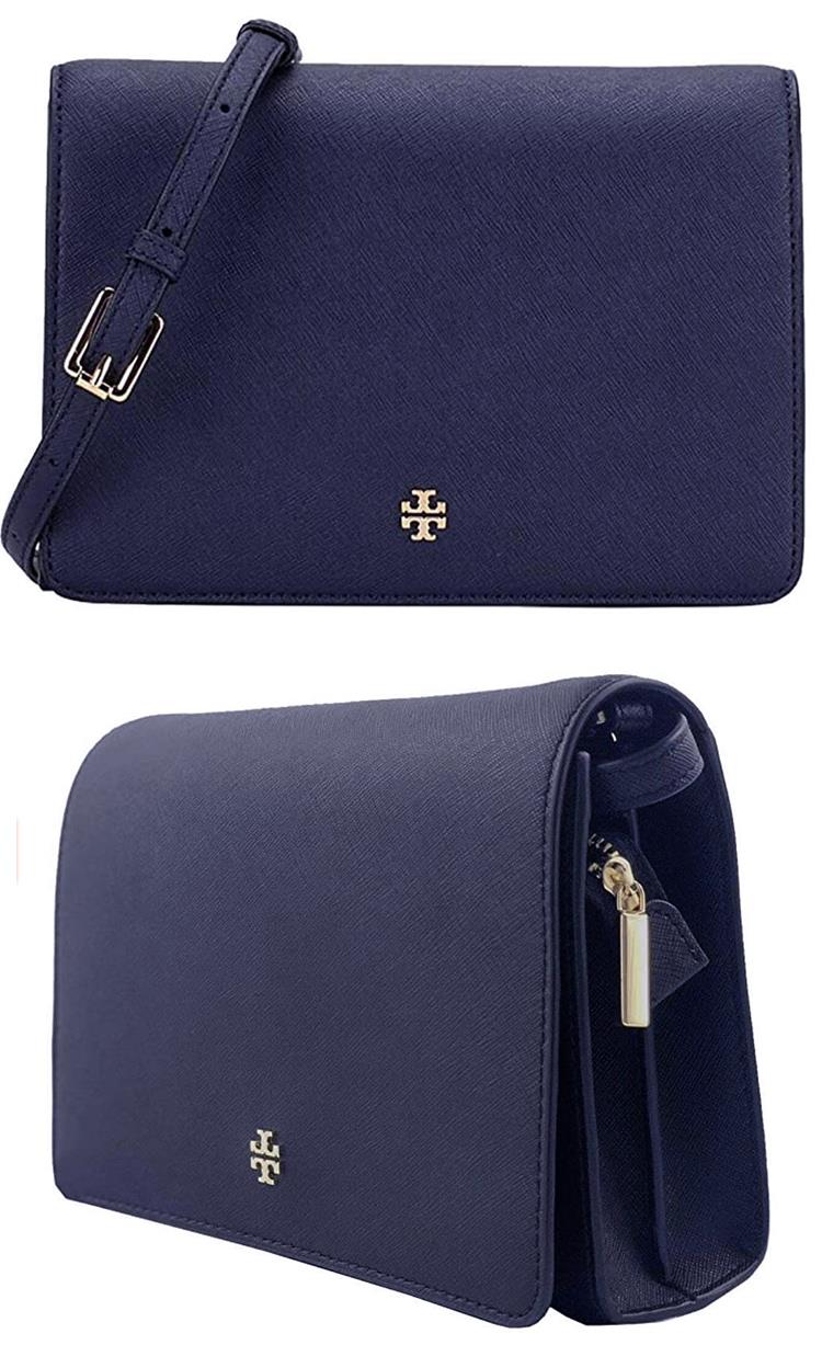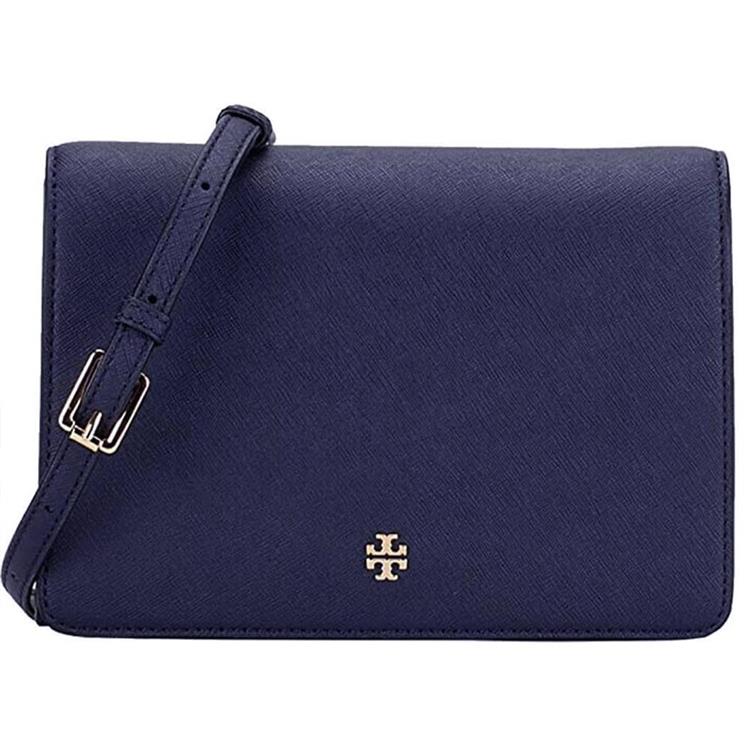TORY BURCH 雙TLOGO皮革翻蓋斜背包-深藍