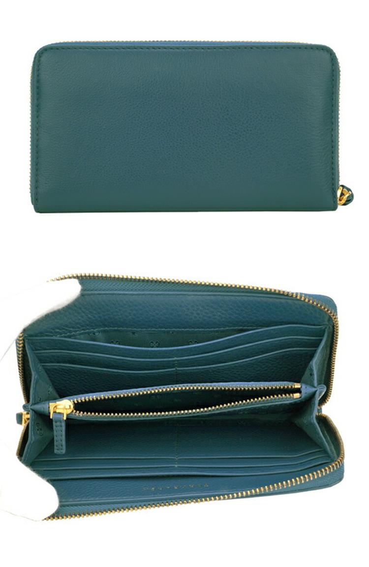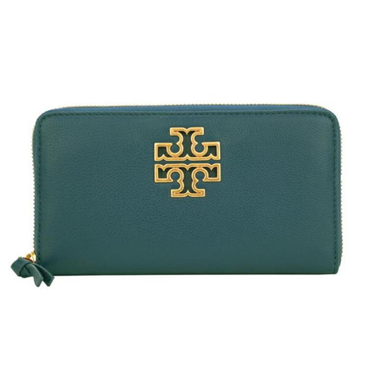 TORY BURCH 雙T-LOGO皮革拉鍊長夾-深綠