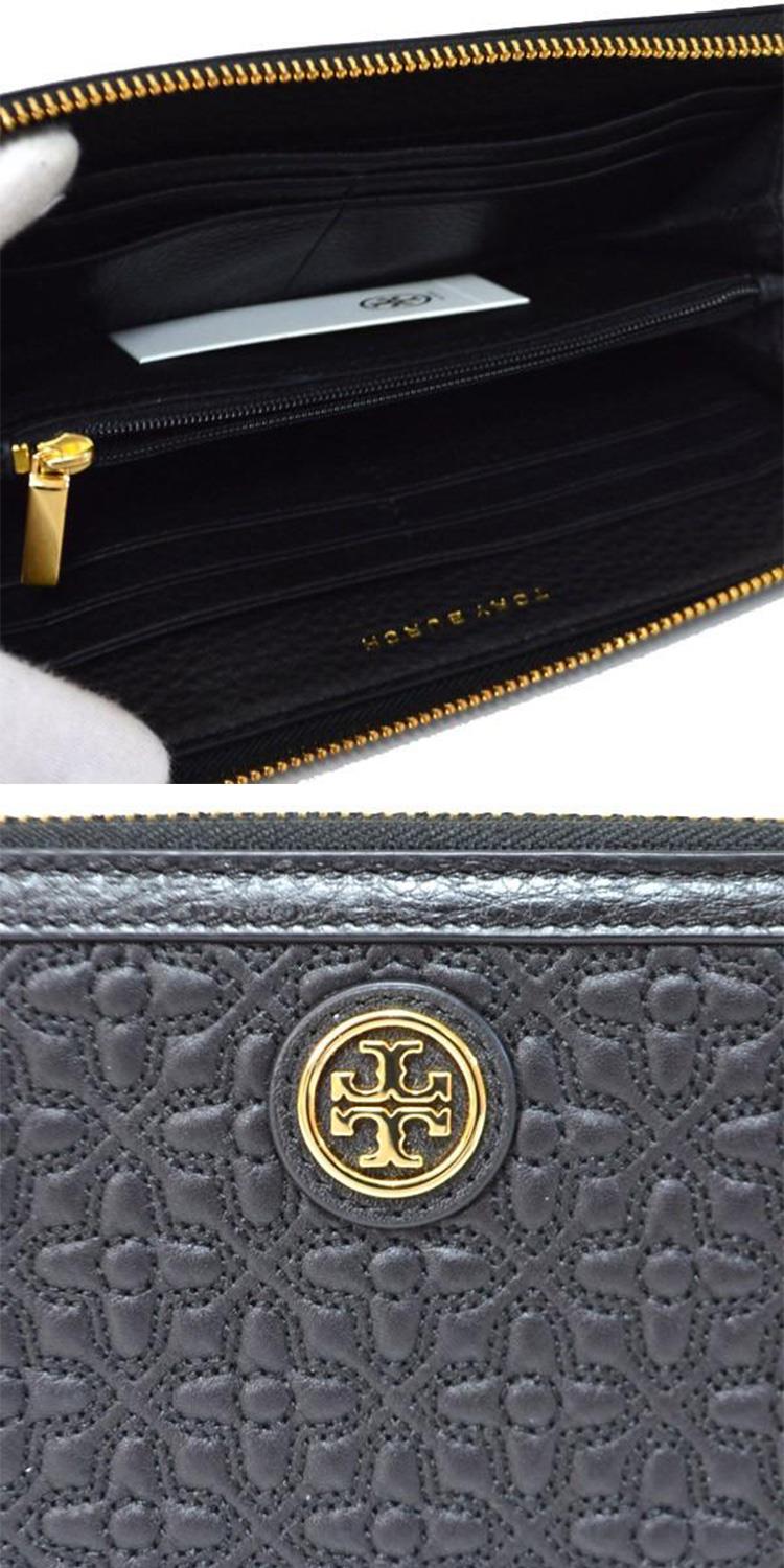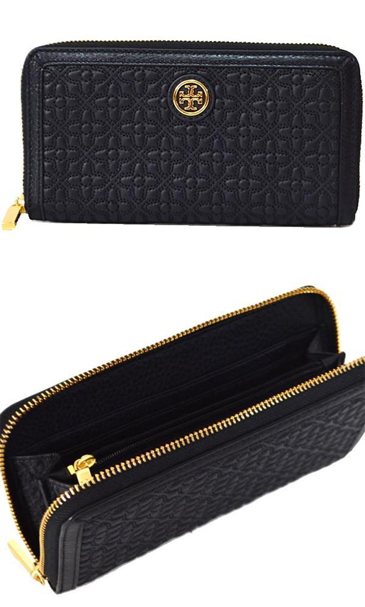 Tory burch 圖騰車線拉鍊皮革長夾-黑色