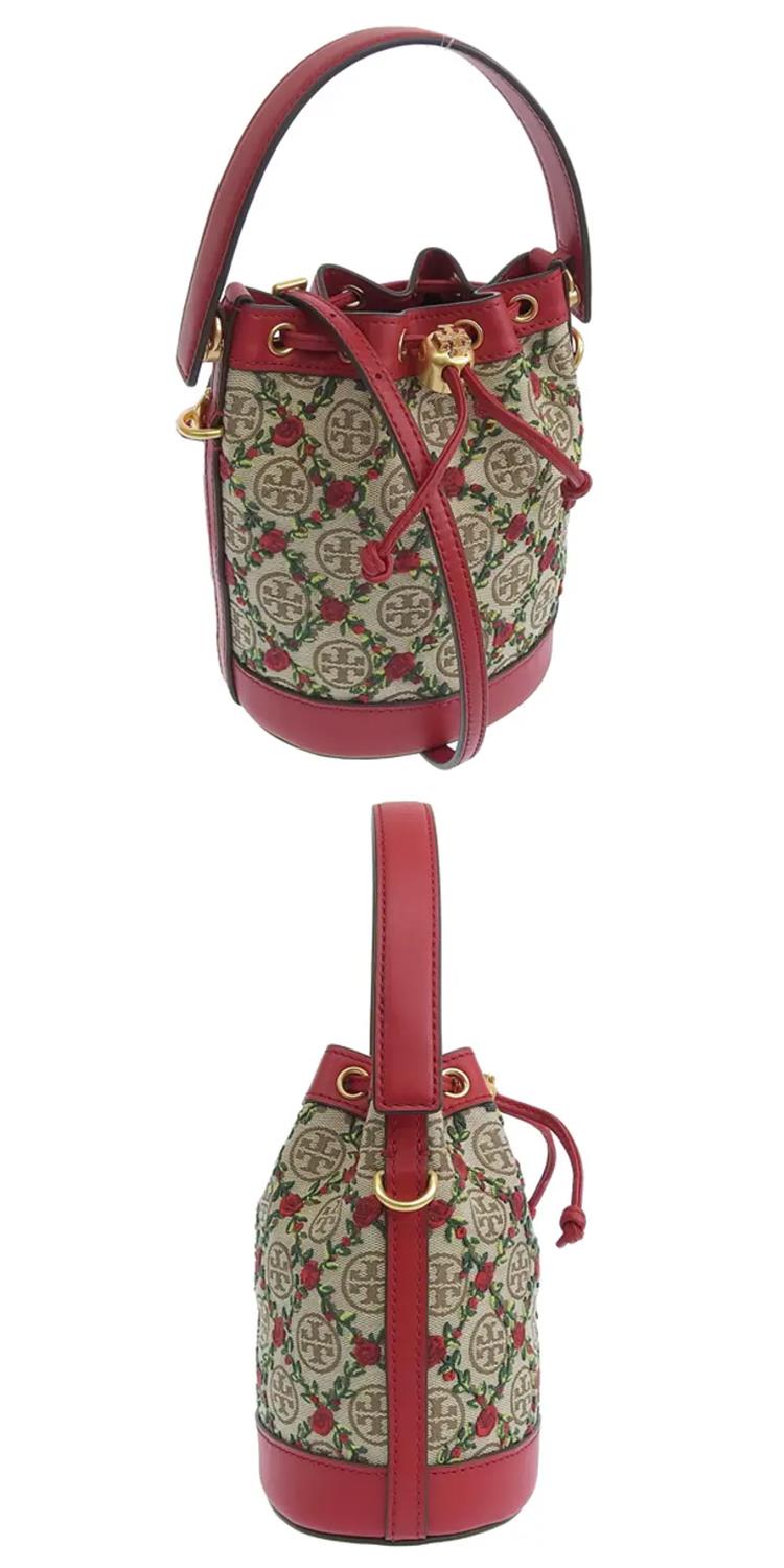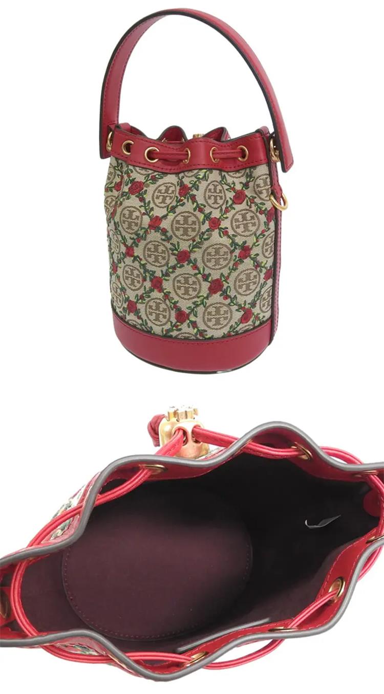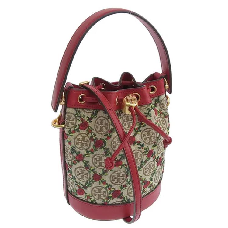 TORY BURCH 帆布拼接皮革水桶包