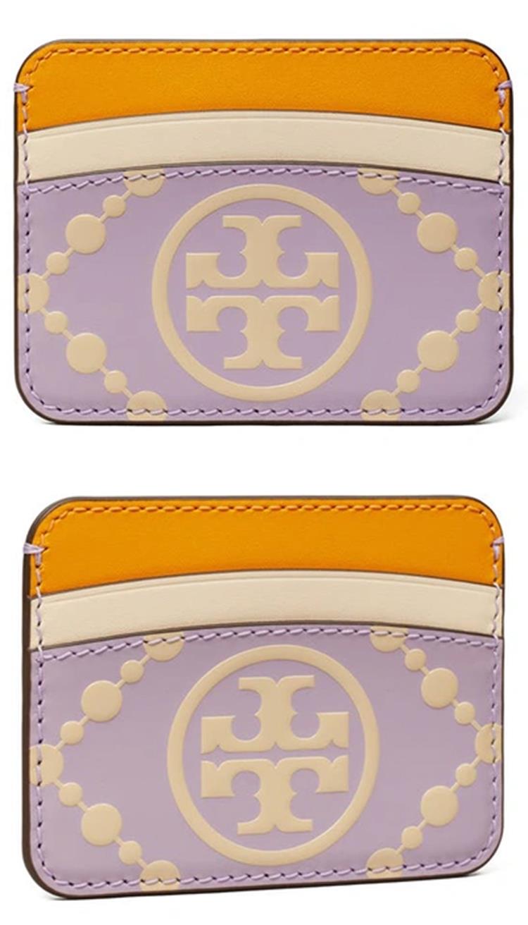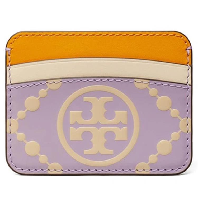 TORY BURCH 雙T-LOGO拼接皮革名片夾-紫色