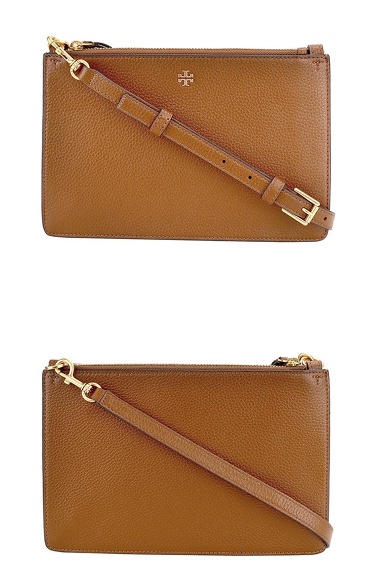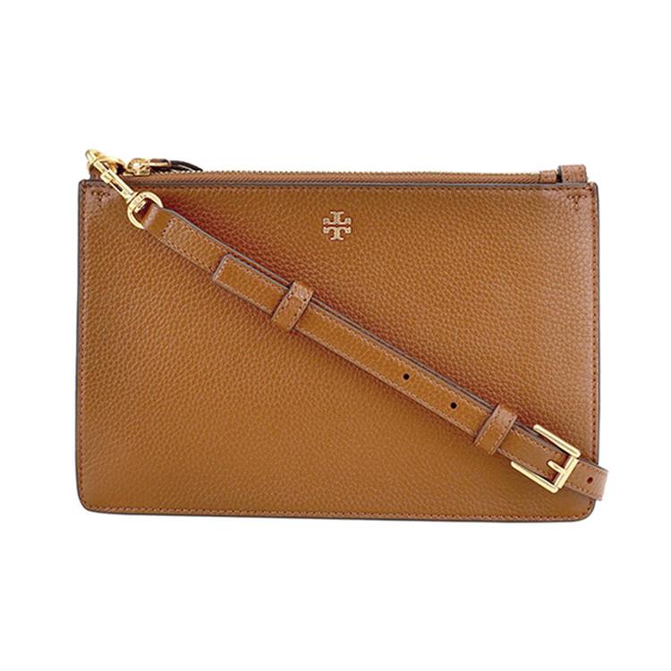 TORY BURCH 皮革雙層拉鍊斜背包-焦糖