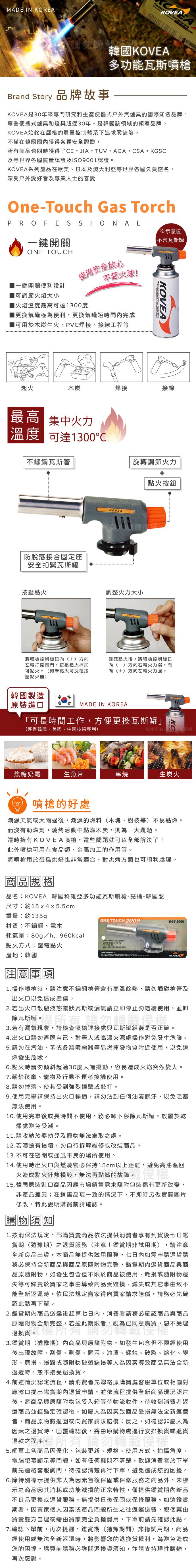 【KOVEA】韓國科維亞多功能瓦斯噴槍-亮橘-韓國製 (KGT-2009)