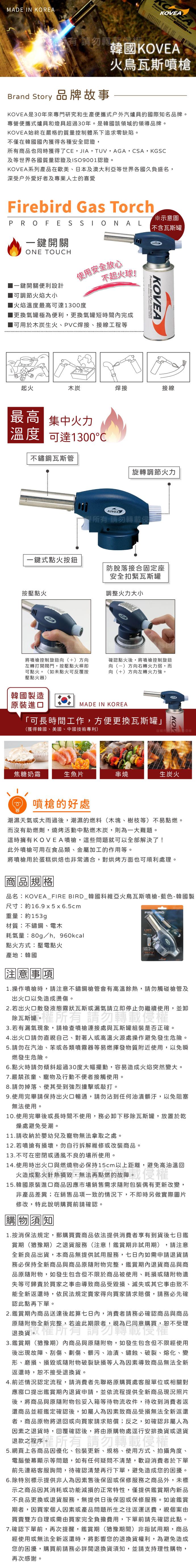 【KOVEA】FIRE BIRD韓國科維亞火鳥瓦斯噴槍-藍色-韓國製 (KGT-2511)