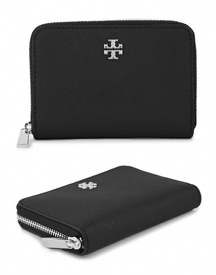 Tory Burch 素面皮革拉鍊零錢包-黑