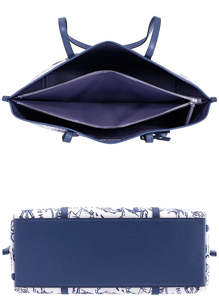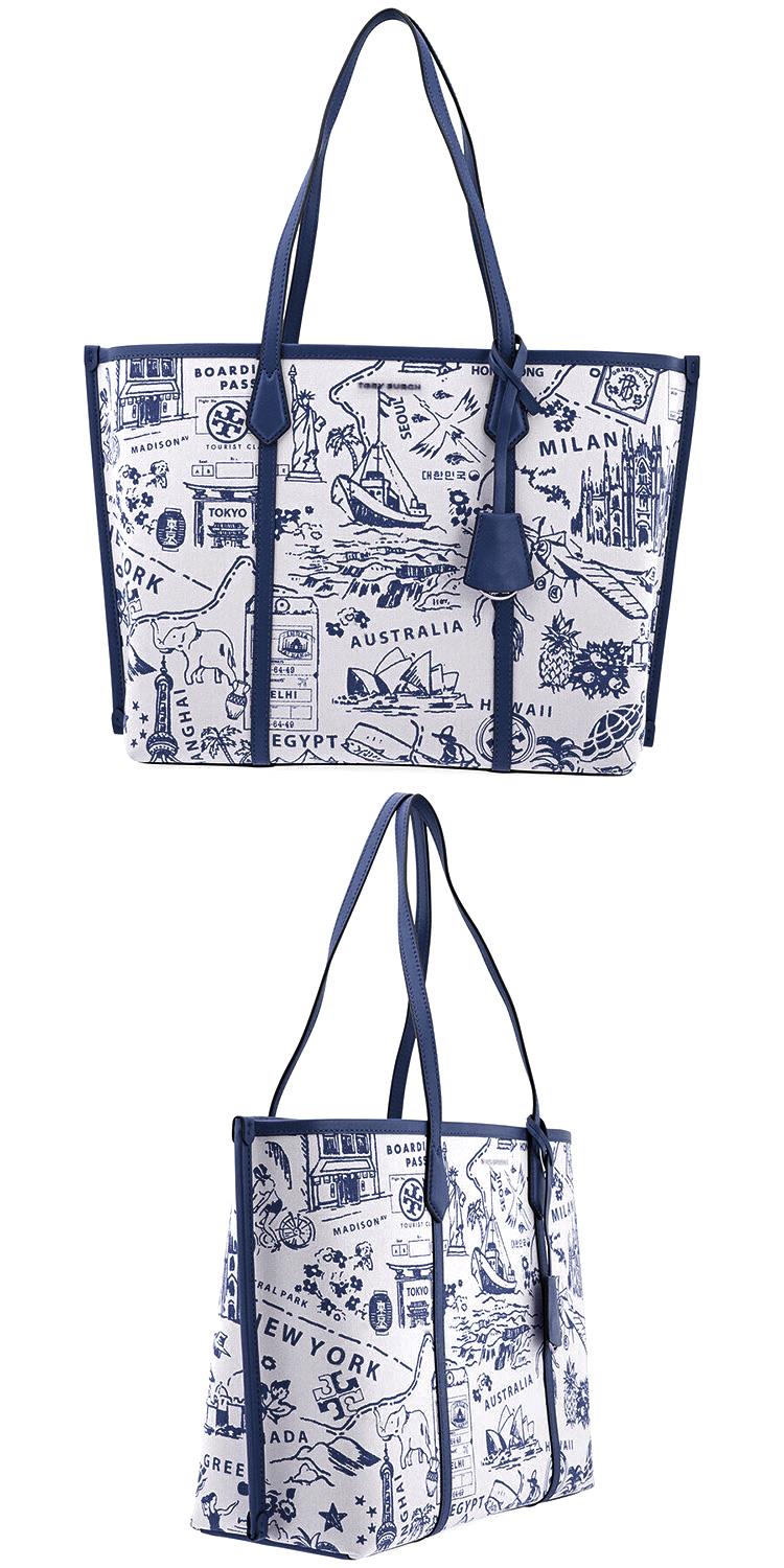 TORY BURCH 地圖印花帆布托特包-深藍白
