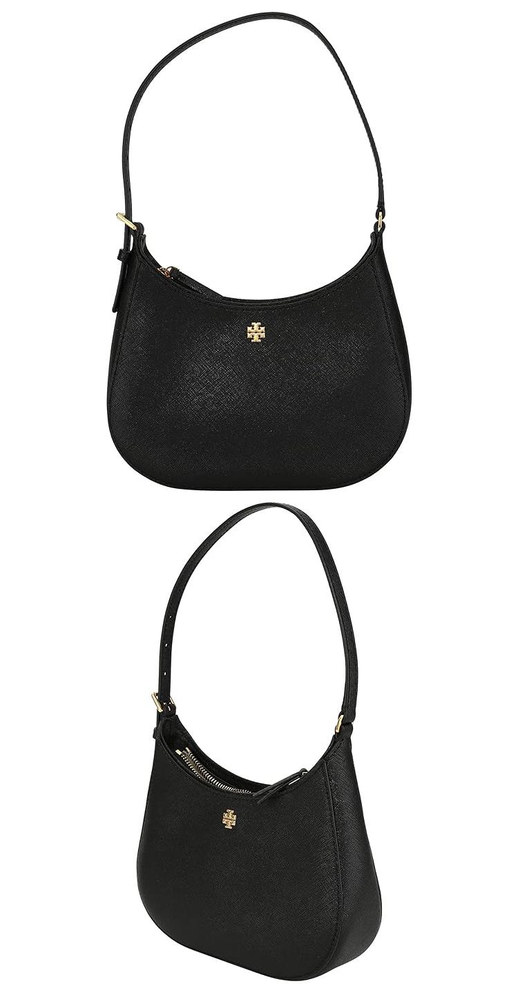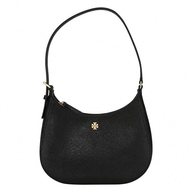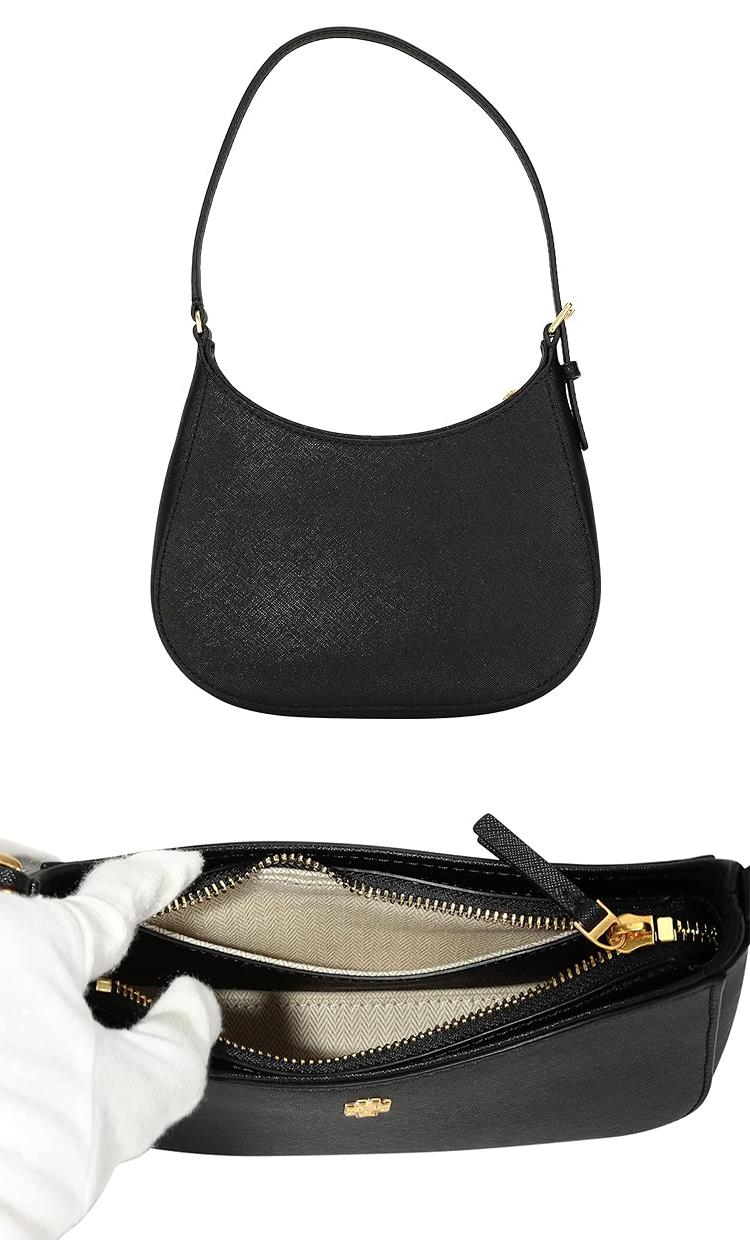 Tory Burch 素面皮革拉鍊肩背包-黑