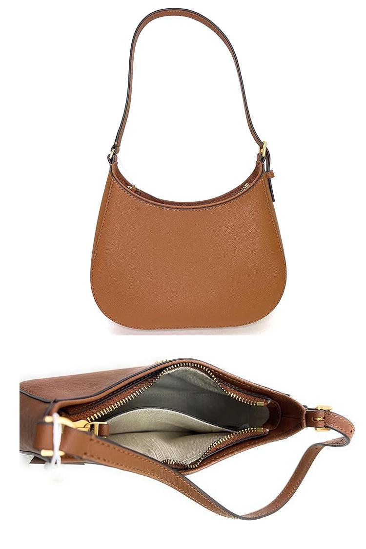Tory Burch 素面皮革拉鍊肩背包-焦糖