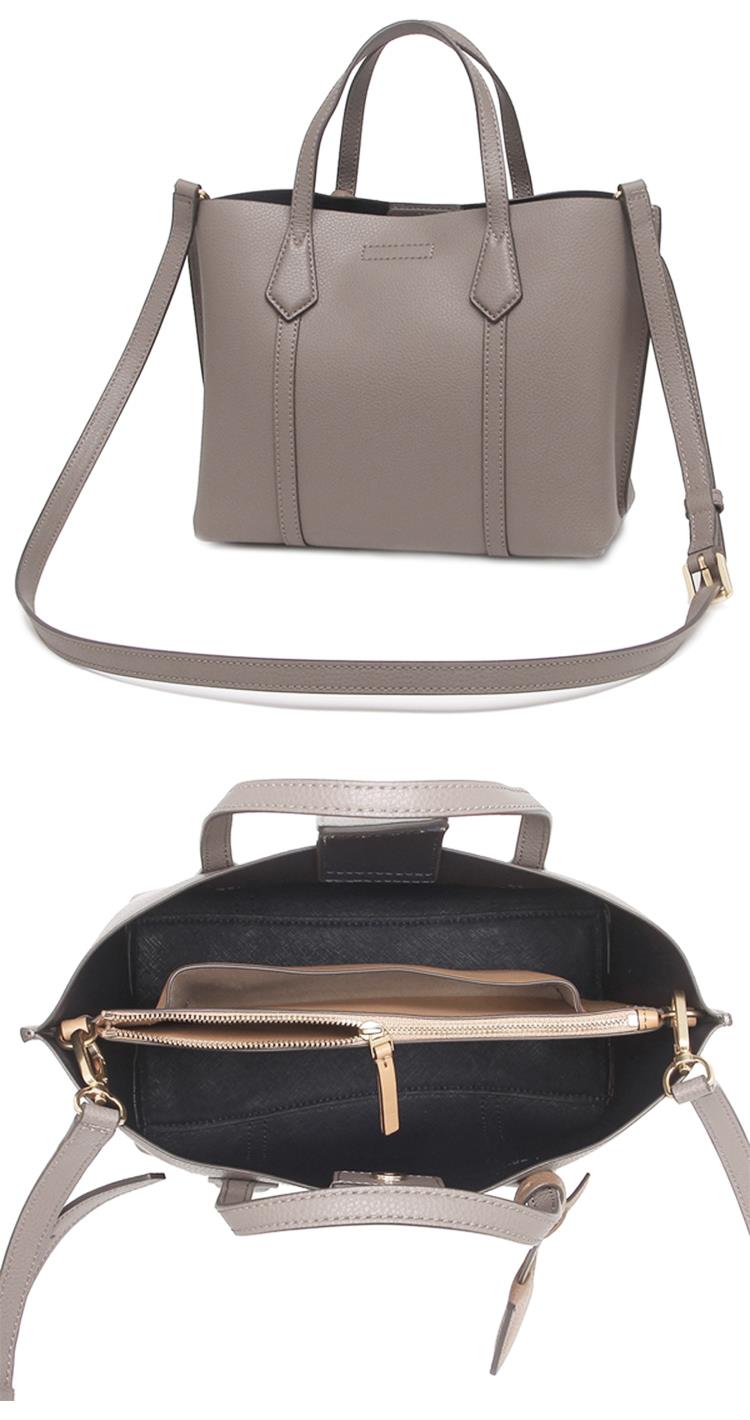 Tory Burch 造型皮革三層托特包-摩卡灰