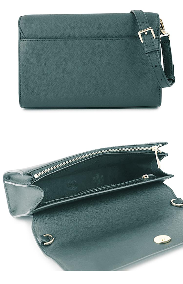 TORY BURCH T-LOGO防刮皮革翻蓋斜背包-墨綠