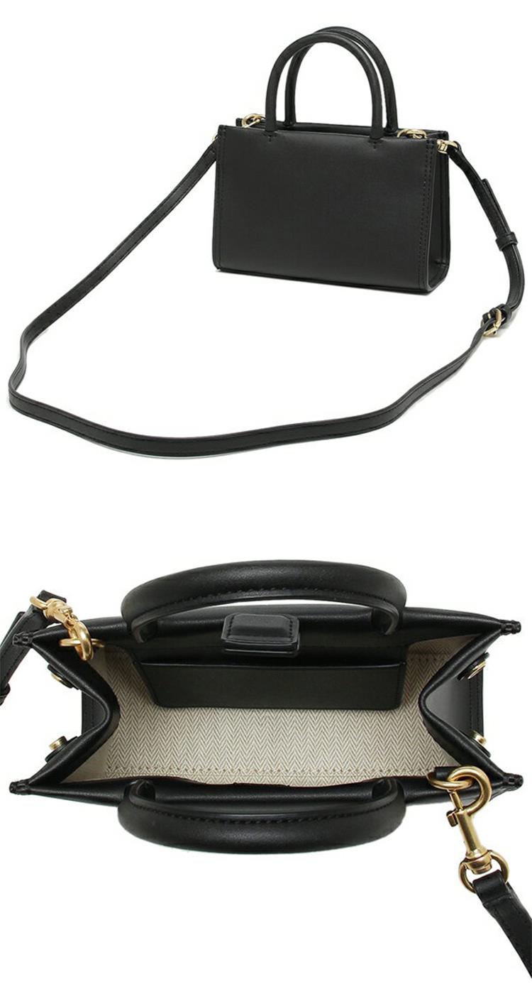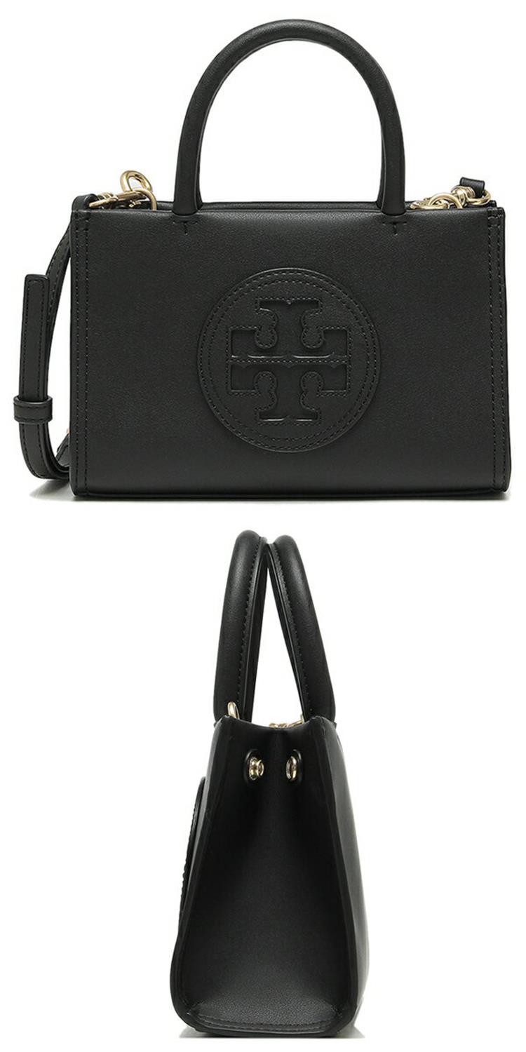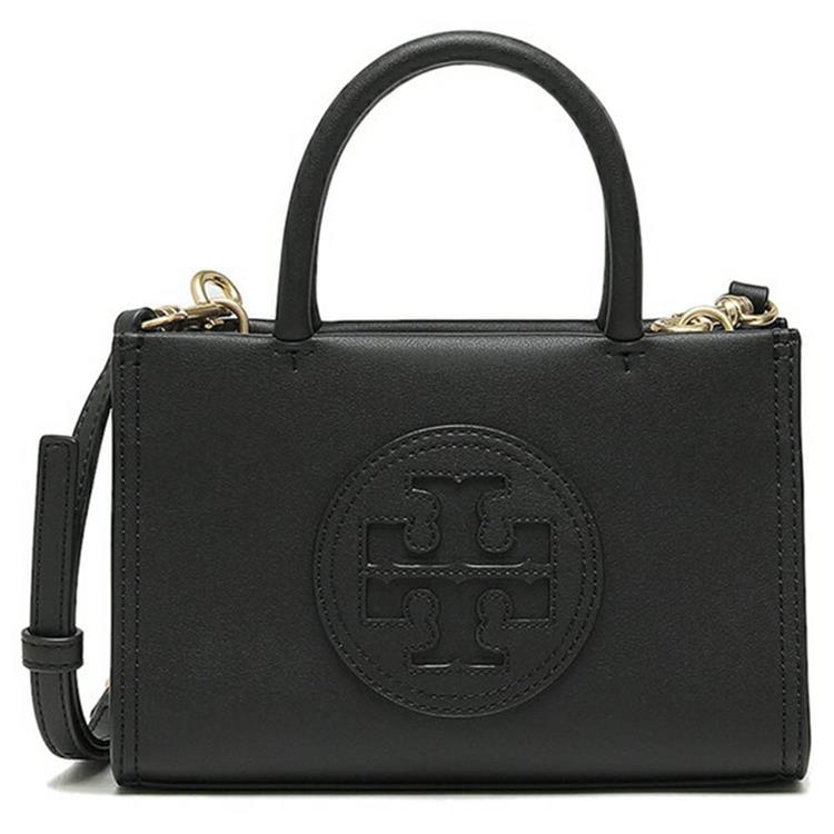 TORY BURCH 圓形LOGO皮革小托特包-黑