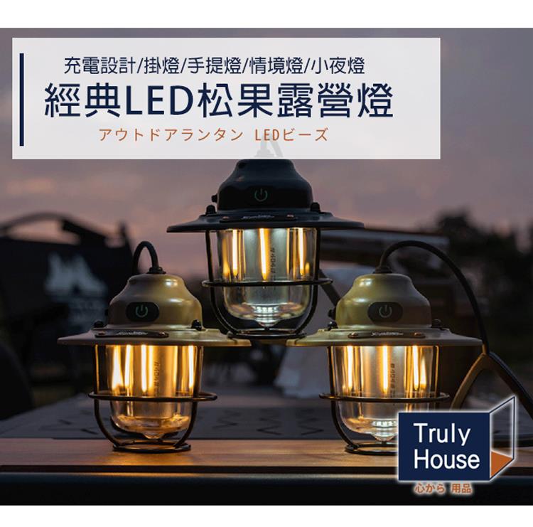 【Truly House】經典LED松果露營燈/掛燈/手提燈/情境燈/小夜燈/LED燈/露營(三色任選)