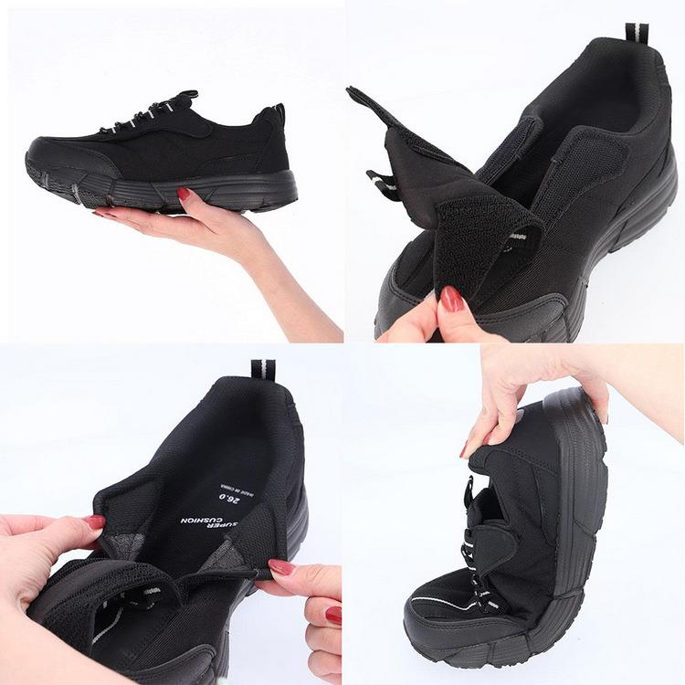 它的設計考慮了穿著和脫著的便利性,也適用於腳部腫脹的情況。鞋底帶有橡膠,提供了穩固的腳步。