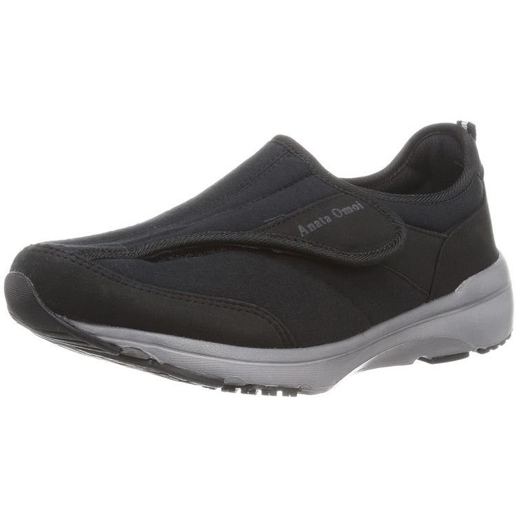 日本Anata Omoi 黑色 展翅魔法鞋(女) 大單面展開 易穿脫 樂齡寬楦健走鞋