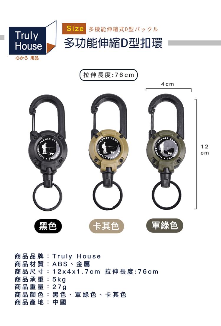 【Truly House】多功能伸縮D型扣環 超值四入組/鑰匙扣/易拉扣/露營(三色任選)