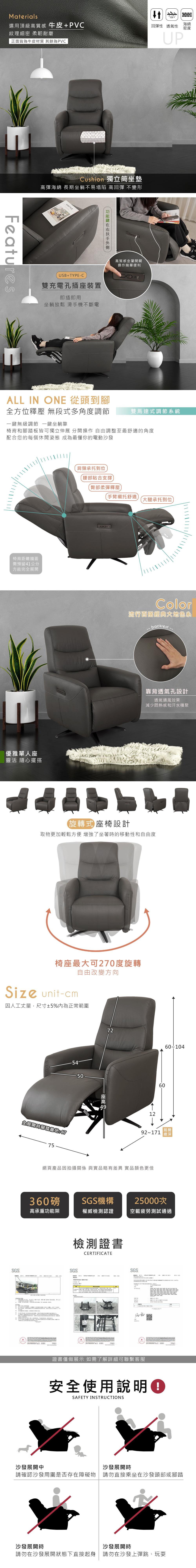 YoStyle 佛雷迪可旋轉電動沙發-單人座