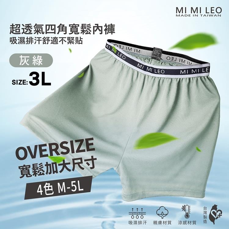 MI MI LEO 台灣製男士彈力織帶透氣舒適內褲240A 男內褲 平口褲 MIT 吸濕排汗-灰綠3L