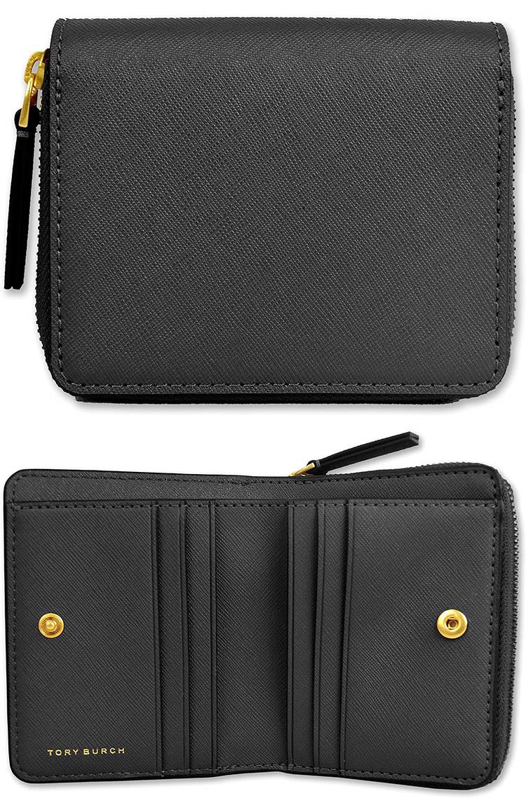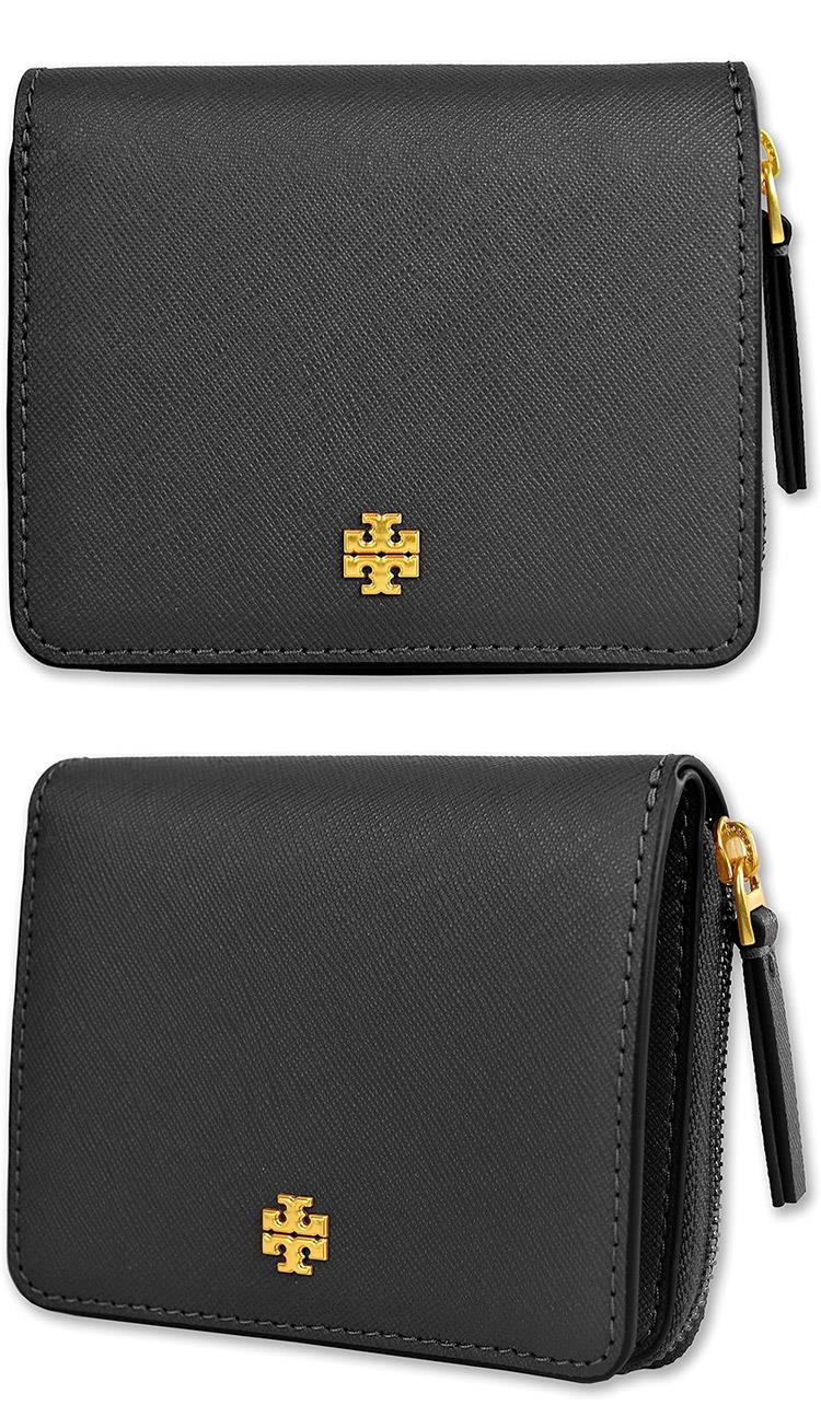 TORY BURCH 防刮皮革拉鍊短夾-黑