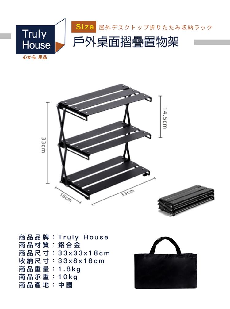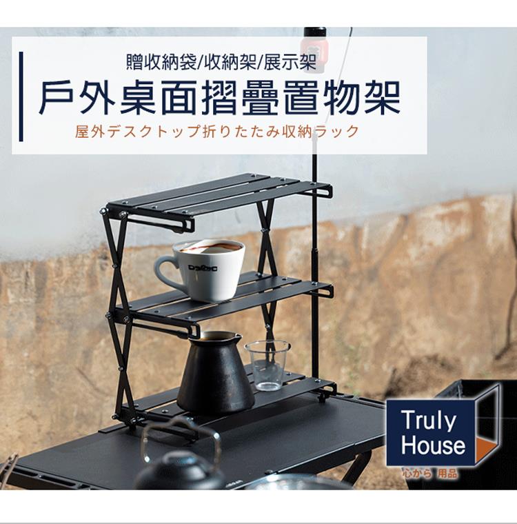 【Truly House】戶外桌面摺疊置物架 贈收納袋/收納架/展示架營/露營/戶外/野炊/置物架/摺疊架