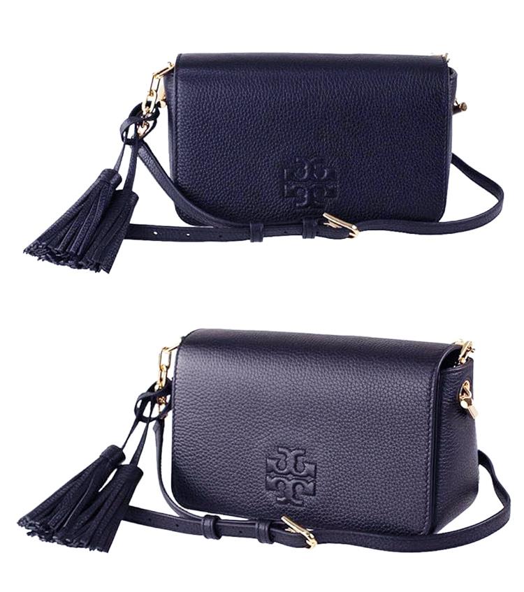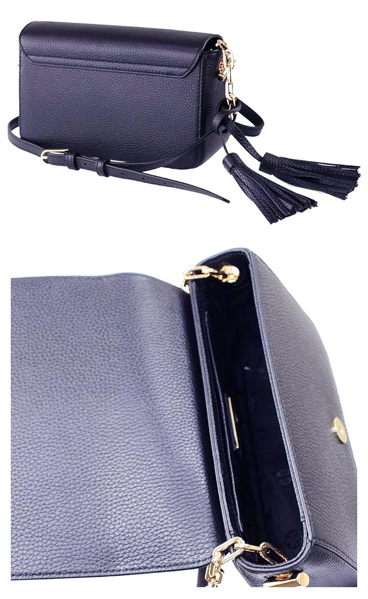 Tory Burch 流蘇皮革翻蓋斜背包-深藍