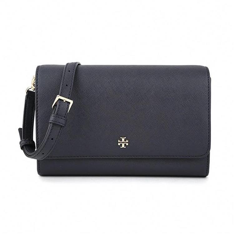 TORY BURCH T-LOGO防刮皮革翻蓋斜背包-黑