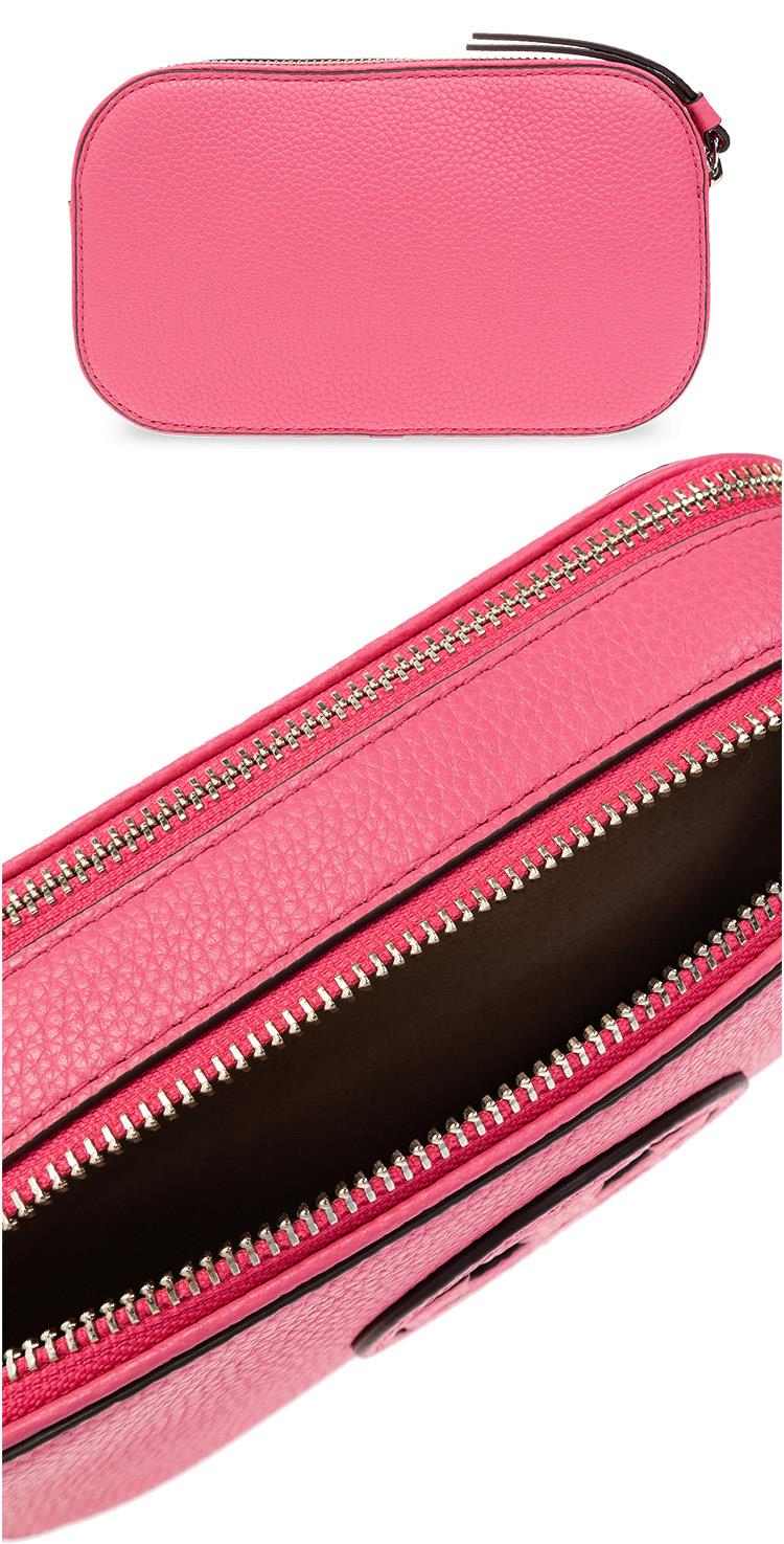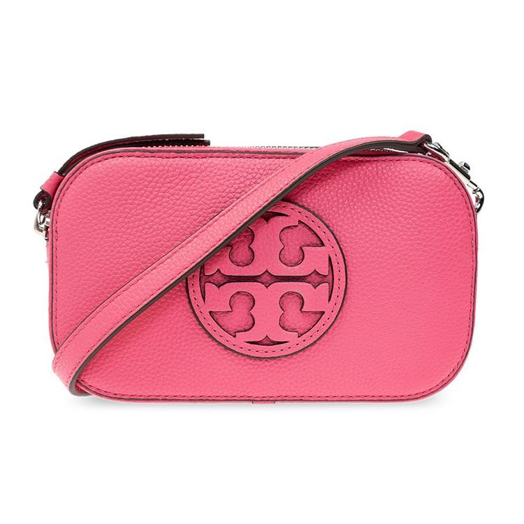 TORY BURCH 雙拉鍊皮革迷你相機包-桃紅