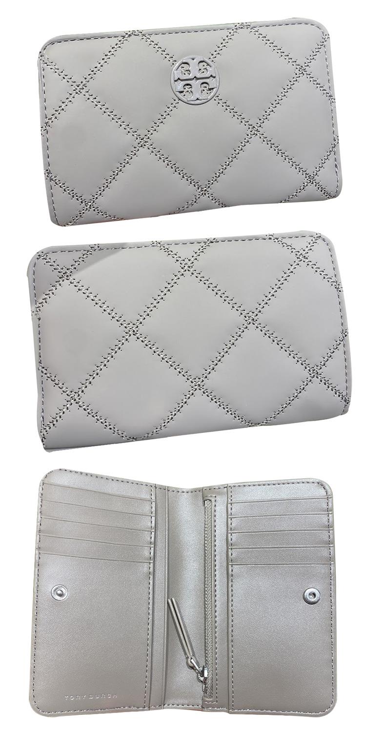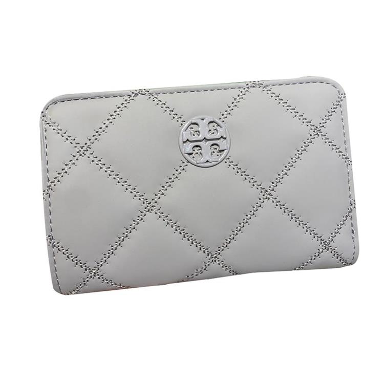 Tory burch 菱格紋皮革中夾-磨砂灰