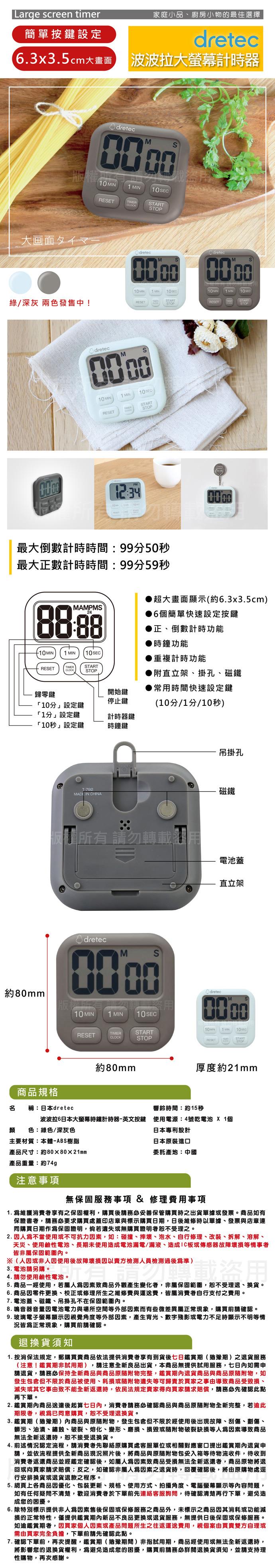 【日本dretec】波波拉日本大螢幕時鐘計時器-6按鍵-深灰色 (T-792DG)