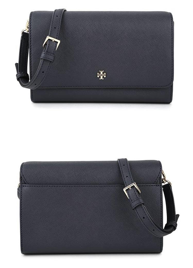 TORY BURCH 雙T-LOGO防刮皮革翻蓋斜背包-黑