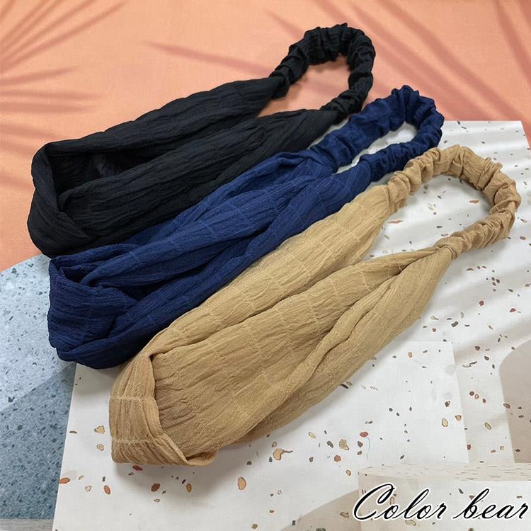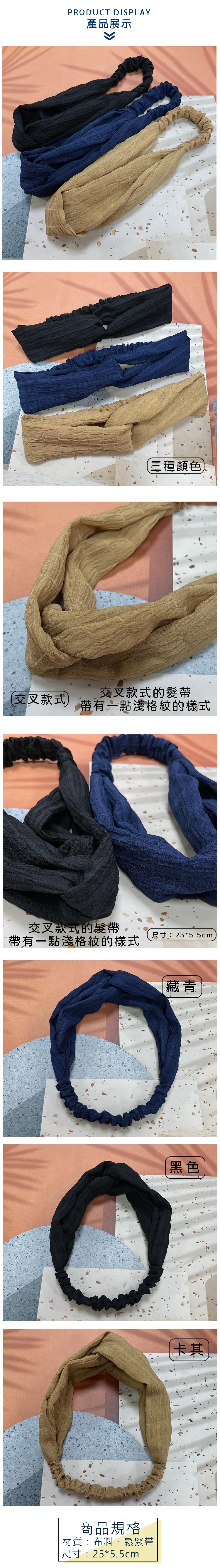 【卡樂熊】簡約格子織布交叉造型髮帶(三色可選)