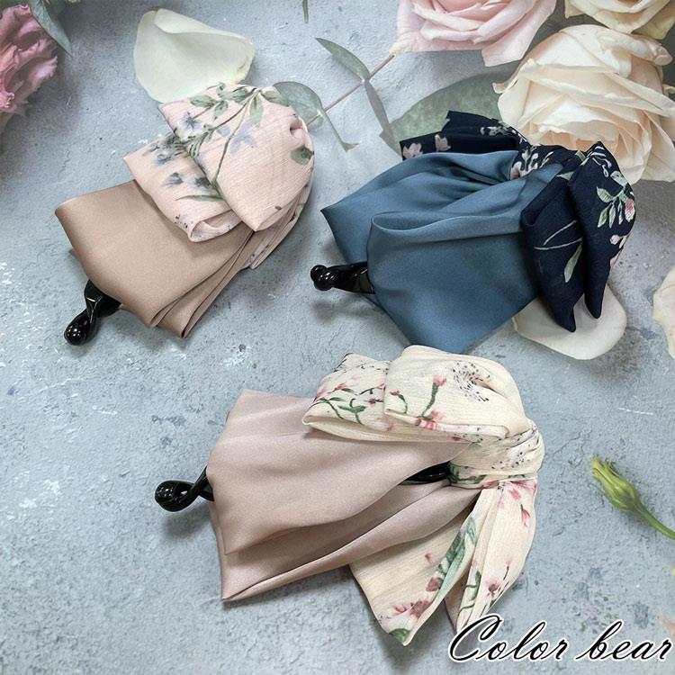【卡樂熊】氣質雪紡花布蝶結造型髮夾/相交夾/馬尾夾(三色可選)