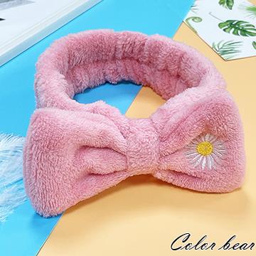 【卡樂熊】珊瑚絨刺繡小雛菊造型洗臉髮帶(三色可選)