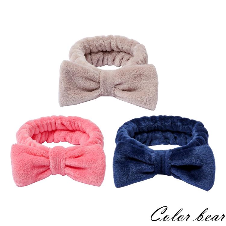 【卡樂熊】珊瑚絨素色簡約蝶結造型洗臉髮帶(三色可選)