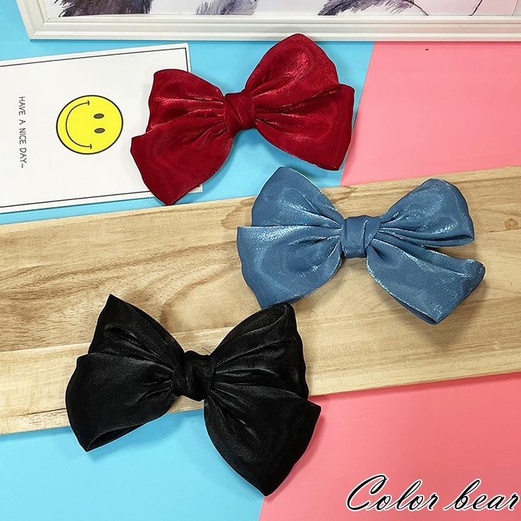 【卡樂熊】韓系緞面雙層蝶結造型髮夾/自動夾(三色可選)