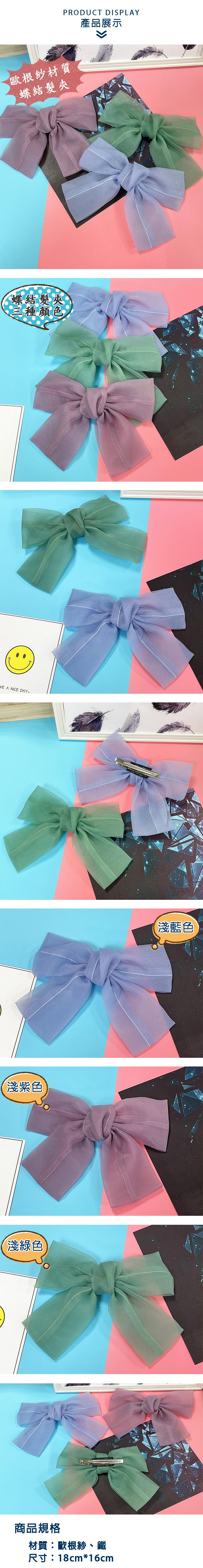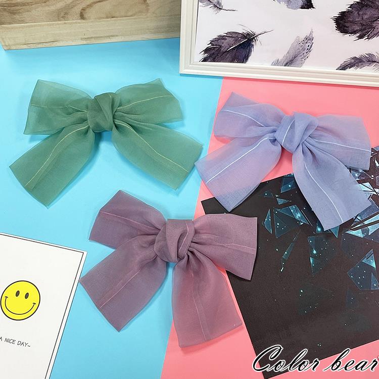 【卡樂熊】韓系優雅歐根紗蝶結造型髮夾/邊夾(三色可選)