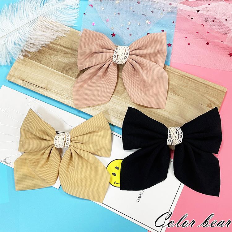 【卡樂熊】韓系蕾絲飄逸蝶結造型髮夾/自動夾(三色可選)