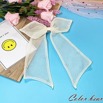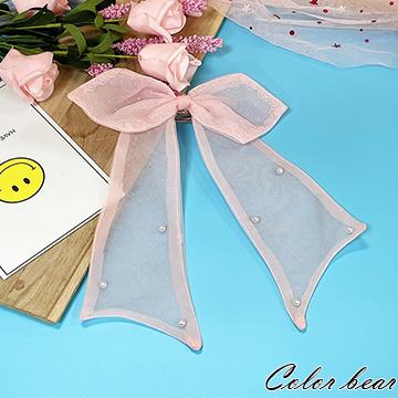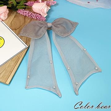 【卡樂熊】童趣鑲邊珍珠蕾絲蝶結造型自動夾/髮夾(三色可選)