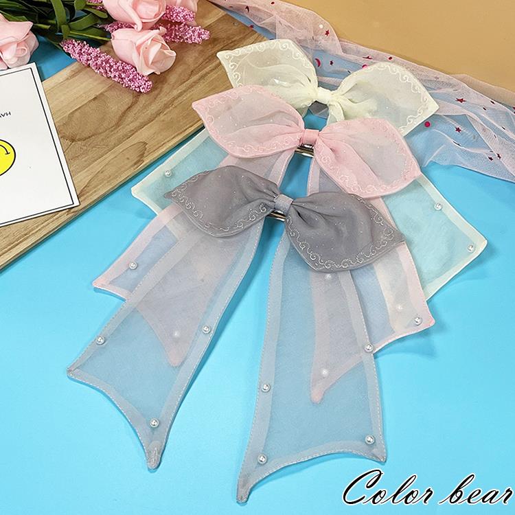 鑲邊珍珠蕾絲蝶結造型自動夾