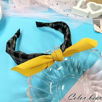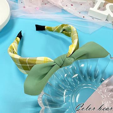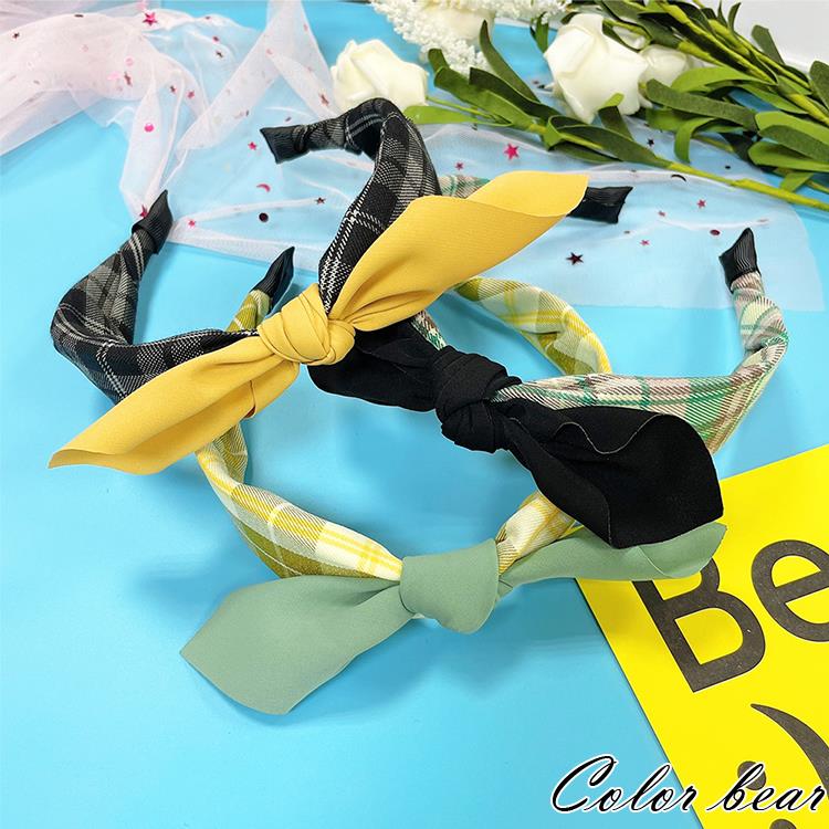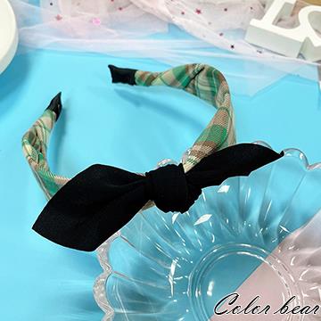 【卡樂熊】韓風撞色格紋雪紡結造型髮箍(三色可選)