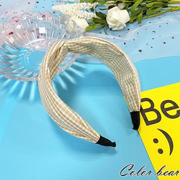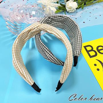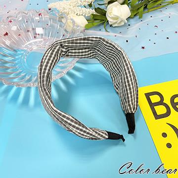 【卡樂熊】韓風滿版細格紋交叉寬版造型髮箍(兩色)