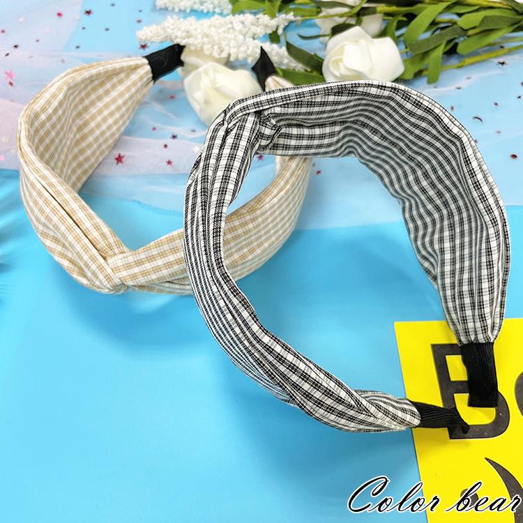 【卡樂熊】韓風滿版細格紋交叉寬版造型髮箍(兩色)
