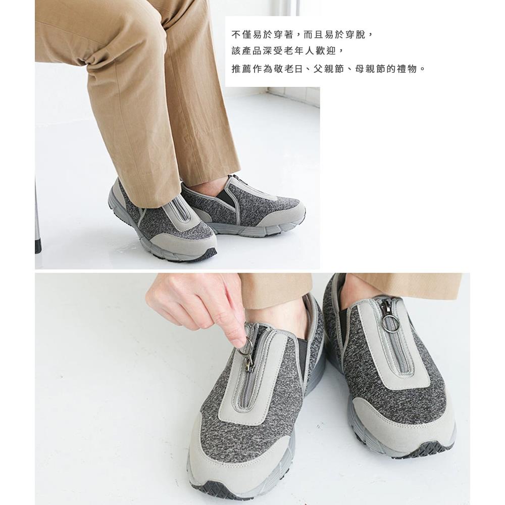 日本Anata Omoi 灰色 拉鍊足力寬楦健走鞋 免鞋帶 男女適用